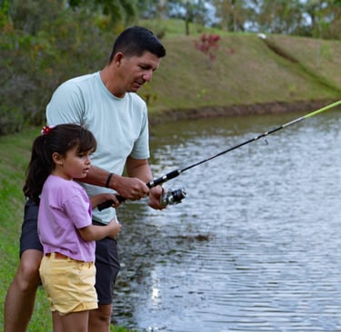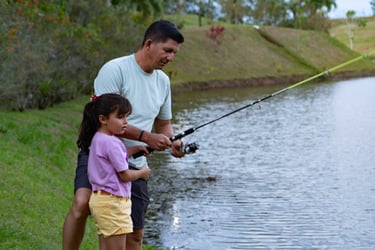 Práctica de la pesca en nuestro gran lago privado y tranquilo. Contamos con el equipo para ello.